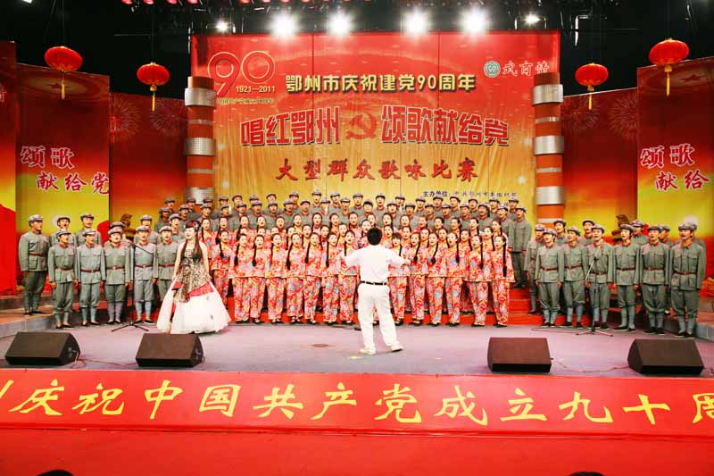 为了隆重庆祝中国共产党成立90周年,讴歌党的恢弘历程,鄂州市委组织部、宣传部、市直机关工委、市广播电影电视局在全市范围内开展“唱红鄂州·颂歌献给党”大型群众歌咏比赛活动。