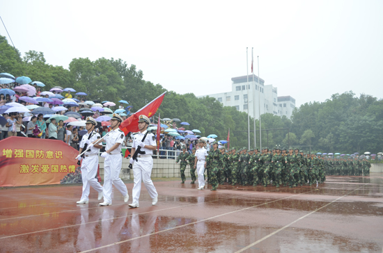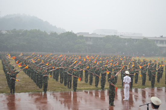 9月21日上午,我校2012年新生军训汇报表演在西校区体育场举行。海军工程大学训练部部长高敬东少将、俞子敬大校及校领导班子成员出席汇报表演。