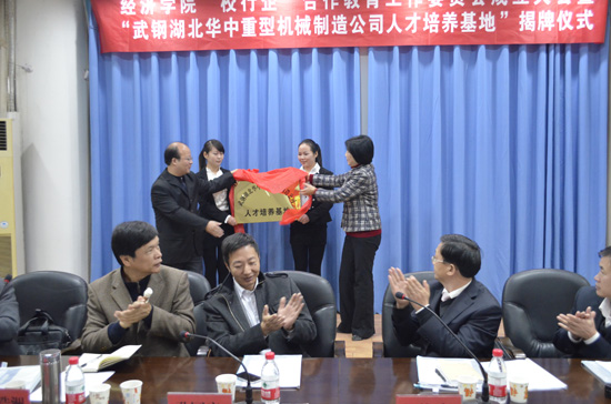 会上还举行了鄂州职业大学“武钢湖北华中重型机械制造公司人才培养基地”揭牌仪式。