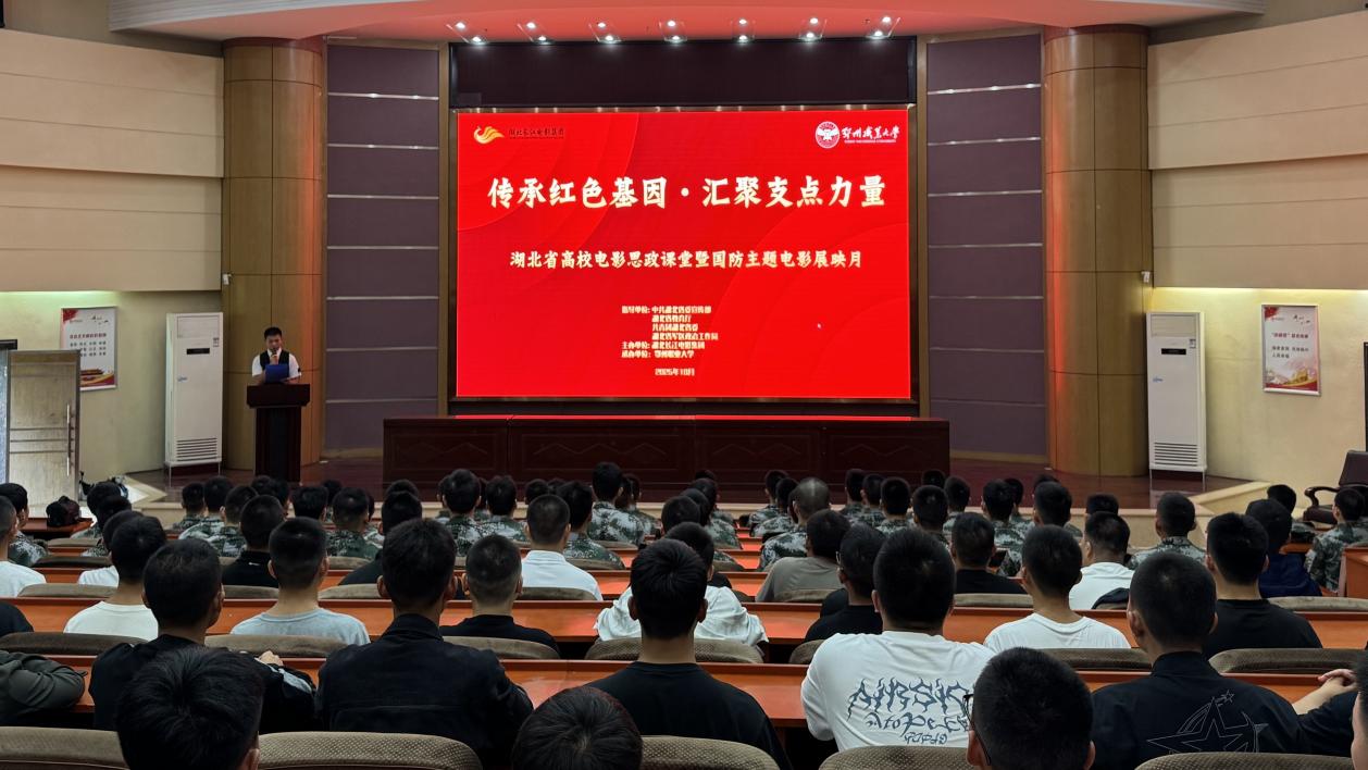 本网讯(学生记者 段嘉成/文 王德艳/摄)10月16日下午,由中共湖北省委宣传部、湖北省教育厅、共青团湖北省委、湖北省军区政治工作局指导,湖北长江电影集团主办,我校承办的“传承红色基因·汇聚支点力量”湖北省高校电影思政课堂暨国防主题电影展映月活动在求真楼报告厅举行。200余名学生参与本次活动。