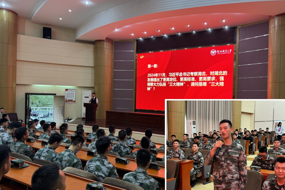 现场还开展了思政知识及国防知识竞答活动,围绕三大精神、抗战历史、军队建设等内容设置抢答题目,引导同学们进一步学习国防知识,强化国防观念。