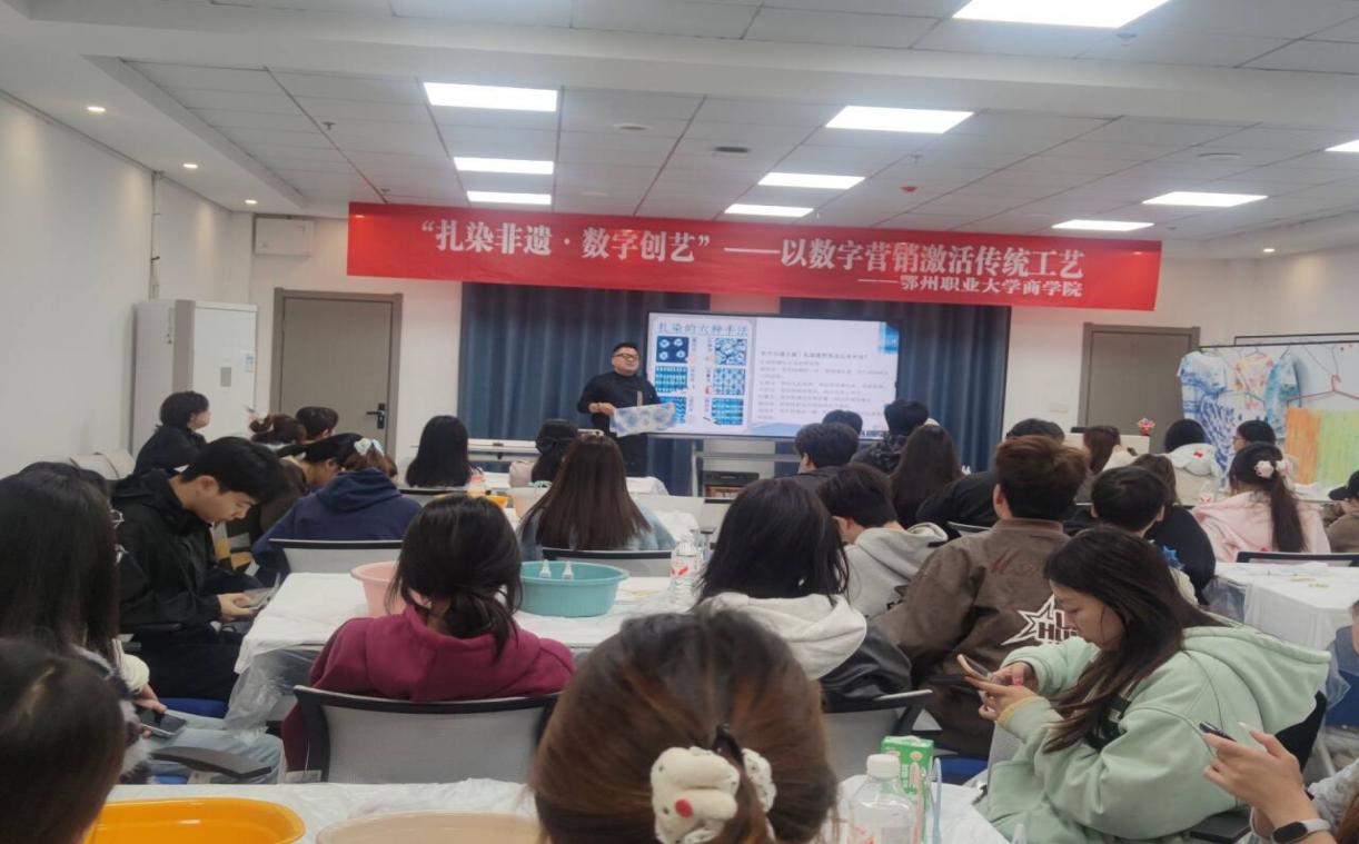 主讲人鲁老师系统梳理了扎染技艺的历史脉络与技术演进,分析了其现状与发展潜力,为同学们后续的创意实践奠定了理论基础。