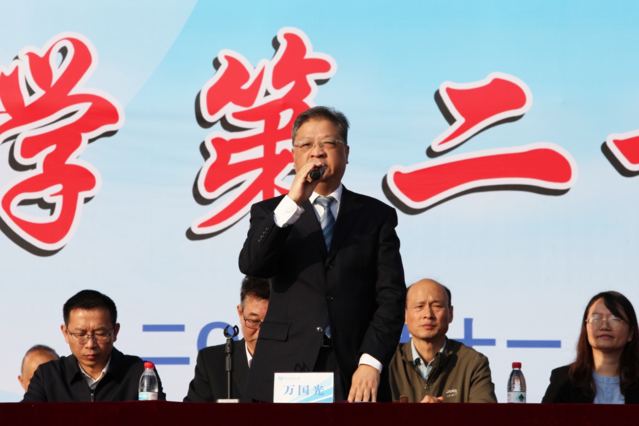 本网讯 11月14日,我校第二十九届运动会在西区运动场盛大开幕。校党委班子成员,各院(部)及处室负责人与全校师生齐聚绿茵场,共同见证了这一体育盛事。校党委书记万国光庄严宣布运动会开幕,校长李梁军致开幕辞。开幕式由副校长王红山主持。