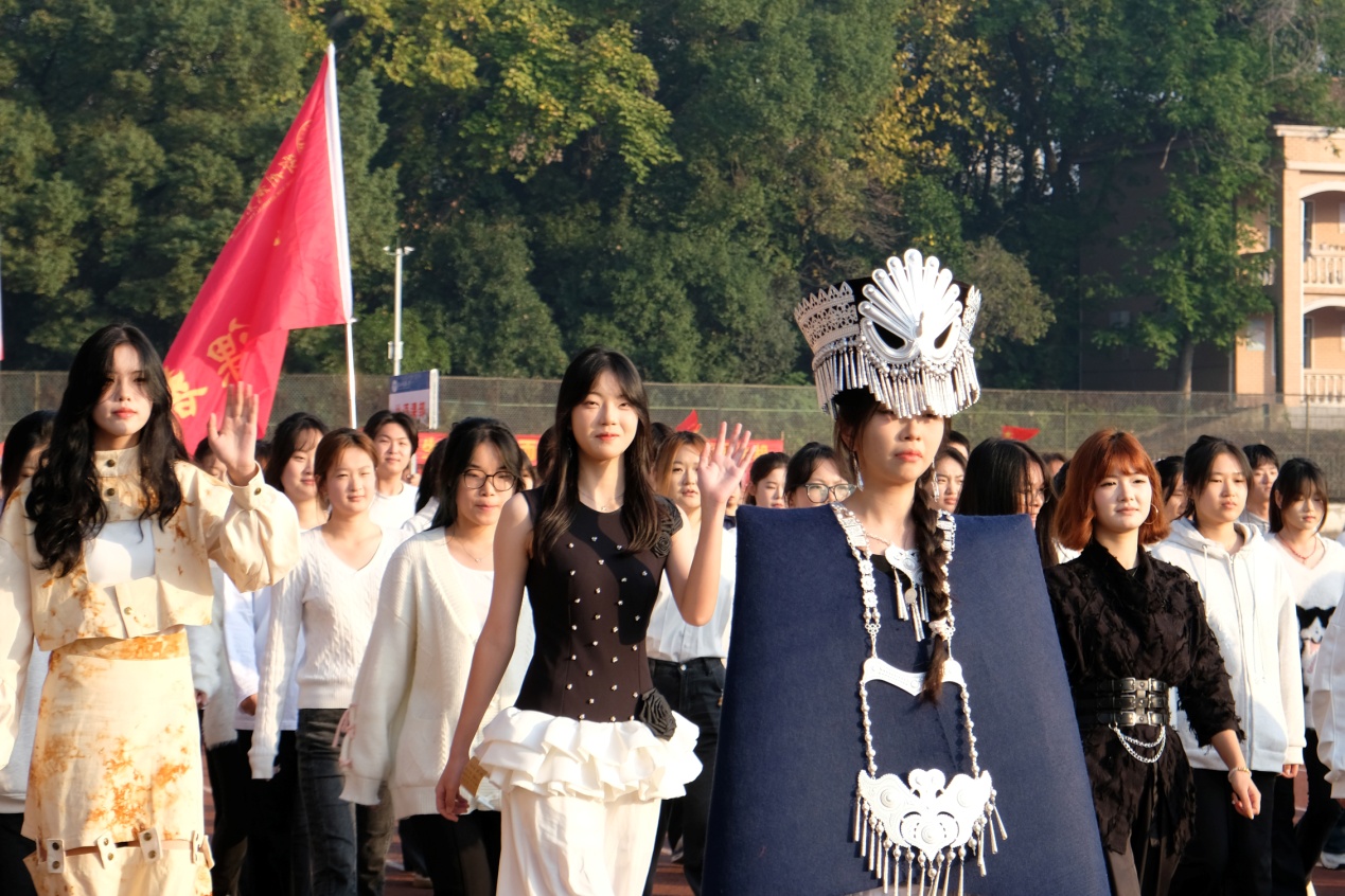 各院(部)方阵巧妙融入专业特色与创意元素,带来一系列富有创意的展示:艺术学院身着民族服饰,展现中华传统之美;航空工程学院则以标准空乘礼仪亮相,彰显专业风范……一个个学科特色鲜明的“创意走秀”,生动呈现了鄂州职大学子朝气蓬勃、创新进取的精神面貌。