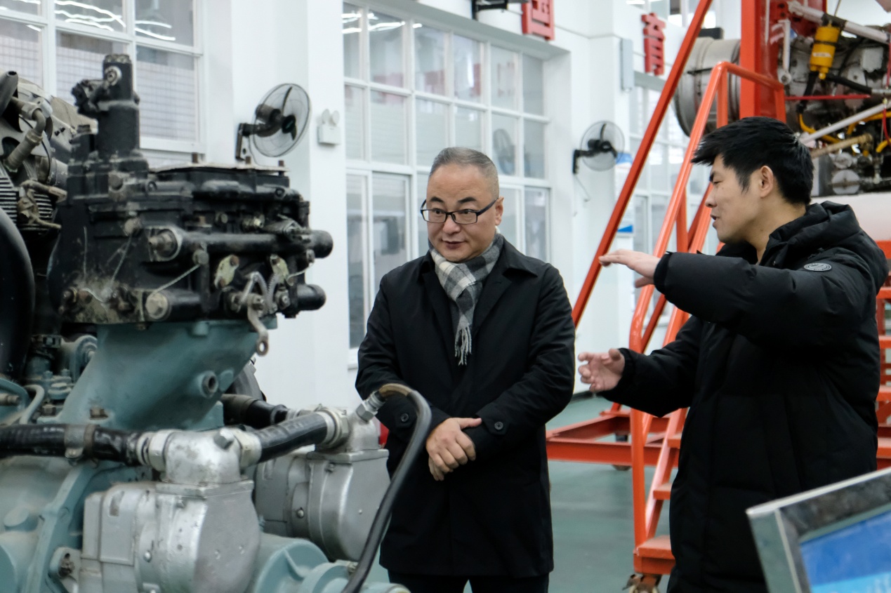 李梁军首先实地参观了航空工程实训中心,详细察看了教学实训设备和场地建设情况。