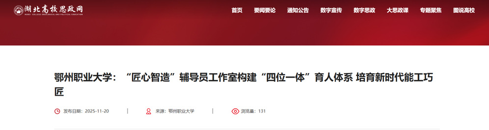 湖北高校思政网——鄂州职业大学:“匠心智造”辅导员工作室构建“四位一体”育人体系 培育新时代能工巧匠